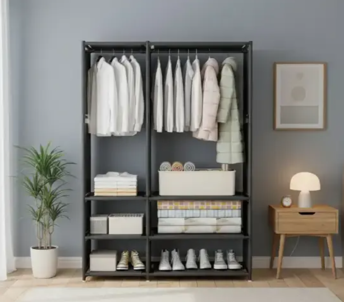 Стелаж легко збирається, займає небагато місця та чудово підходить для спальні, гардеробної, передпокою, офісу або орендованого житла.